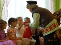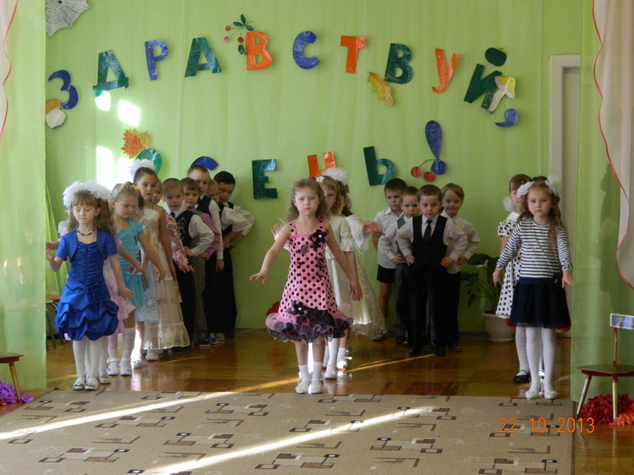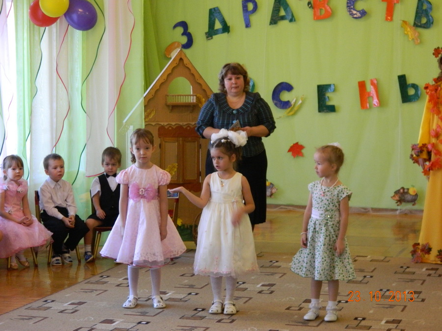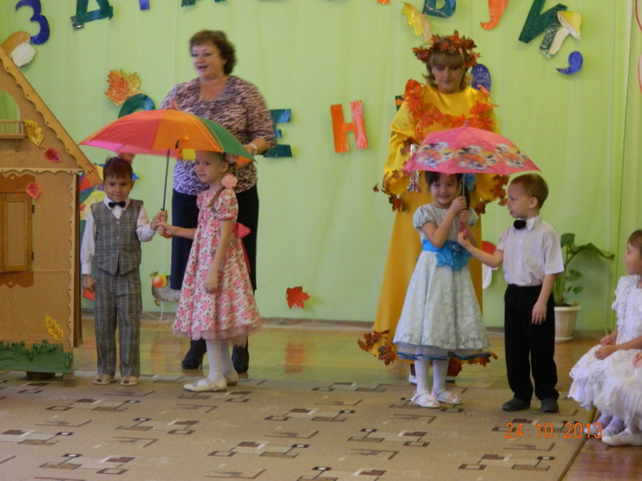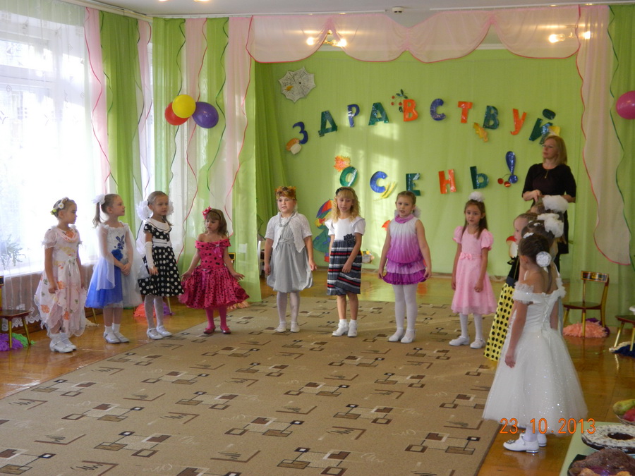 Открывали праздники самые маленькие. Как они старались: пели, играли, танцевали и дарили хорошее настроение своим близким, которые поддерживали их во время праздника. Дети средней группы «Дюймовочка» показали себя настоящими артистами. С каким удовольствием они показали инсценировку, танцевали, рассказывали стихи и пели песни. Не подкачали и дети старшей группы «Золотой ключик». За лето они подросли и повзрослели, а на празднике показали свои способности. Финальную точку поставили дети подготовительных групп «Ромашка» и «Буратино». В этих группах осенние праздники прошли в форме конкурса «Мисс Осень». Какие все были красивые и как все старались! Большую помощь при подготовке к празднику оказали мамы. В конкурсе «Визитная карточка» девочки рассказали в стихах о себе и своих интересах. В конкурсе «Любимое блюдо» девочки вместе с мамами приготовили свои любимые блюда и поделились рецептами с гостями. А как они старались, когда представляли платья и пели. Не подвели и мальчики. В этот вечер они были настоящими кавалерами. Каждой участнице была присвоена номинация и подарен сладкий приз.