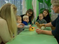 В детском саду прошло занятие консультационного пункта, на которое пришли будущие воспитанники и мамы. Учитель-логопед Павлова Г.Е. провела игровое занятие с родителями и детьми по речевому развитию детей. Мамы и дети познакомились с элементами массажа с помощью массажного мячика, упражнениями артикуляционной гимнастики и поиграли в веселую игру. Для родителей были подготовлены памятки с играми по развитию речи младших дошкольников.