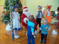 Новый год - любимый праздник для детей и взрослых. Самые маленькие воспитанники детского сада пришли на Новогоднюю елочку. Их встречали Дед Мороз и Снегурочка, а помогали им сказочные герои. Ёлочка проводилась для детей посещающих Консультационный пункт. На праздник пришли семь детей с мамами. С детьми играли в игры, пели песни, а в конце праздника дети получили сладкие призы.