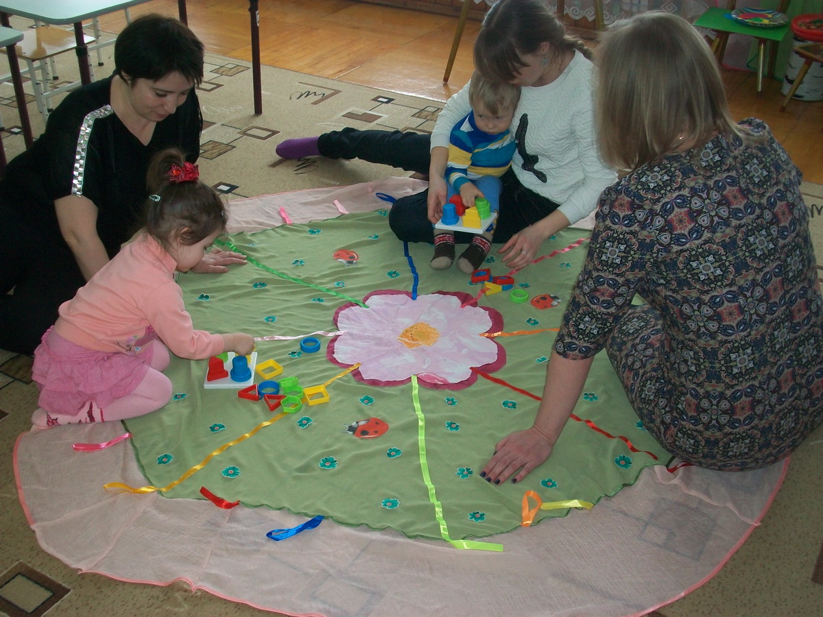 В рамках работы консультационного пункта прошло развивающее игровое занятие для детей и родителей с использованием театрализованной деятельности «Стоит в поле теремок». В игровой форме дети и родители познакомились с развивающими играми на закрепление цвета, формы предметов, величины, развитию мелкой моторики и посмотрели сказку «Теремок».