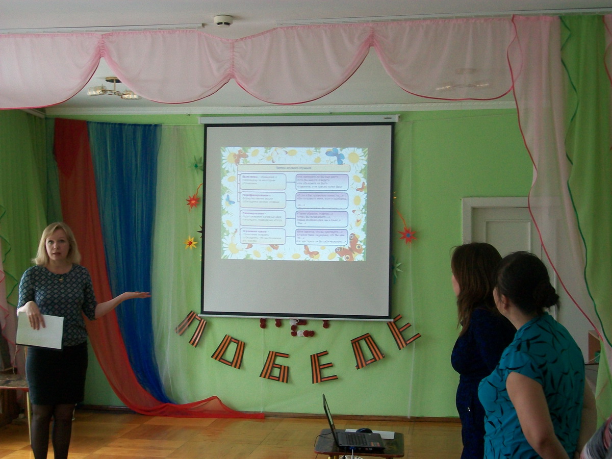 Профессиональная деятельность воспитателя – это процесс непрерывного общения его с дошкольниками. От характера педагогического общения во многом зависит эффективность воспитательно-образовательной работы в детском саду. Общение педагога с детьми существенным образом влияет на формирование личности ребенка, особенности его отношения с окружающими. Педагогическое общение рассматривается широко и включает в себя как коммуникативные воздействия педагога на детей и разнообразные приемы воспитательного воздействия, так и отношение педагога к детям. В детском саду прошел семинар-практикум «Общение педагога и ребенка», в ходе которого педагоги вспомнили стили общения, функции общения и в практической деятельности апробировали методические приемы.